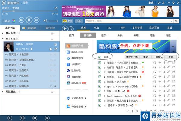 如果一首一首的下是非常麻煩的,酷狗支持歌曲批量下載,怎么操作呢?