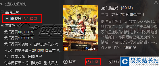 3、在彈出的對話框中選擇要下載的劇集及視頻清晰度。