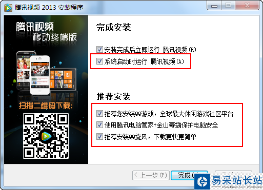 安裝完畢后安裝向導會推薦你安裝一大堆的騰訊軟件,這里不需要就別裝了,要裝也可以單獨裝,這里捆綁的東西太多。
