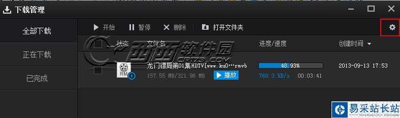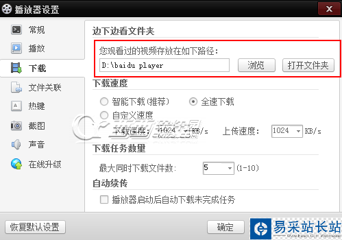 5、關于默認的下載目錄可以點擊軟件最上面的播放器一欄,然后選擇下載管理,在下載列表的右上角點擊設置進入下載設置界面進行默認下載目錄的設置。