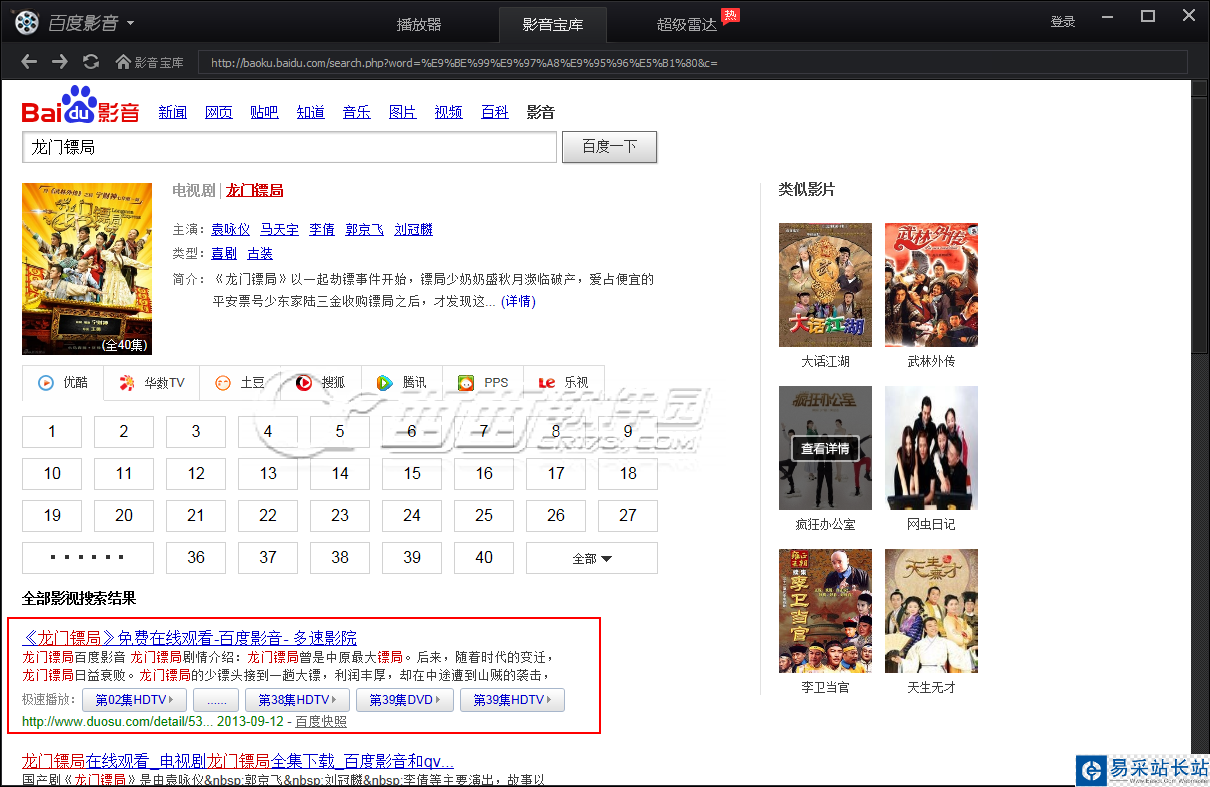 3、這里的搜索結果跟用百度影音瀏覽器的搜索結果一樣都是以百度搜索引擎展示的,這里我們得找一個小網站點擊觀看,像優酷、樂視之類的網站會因為版權問題或是競爭問題不會讓你用百度影音下的。