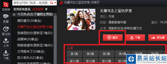 b.在“視頻庫/推薦頁”打開視頻詳情頁,點擊播放/劇集表;如圖: