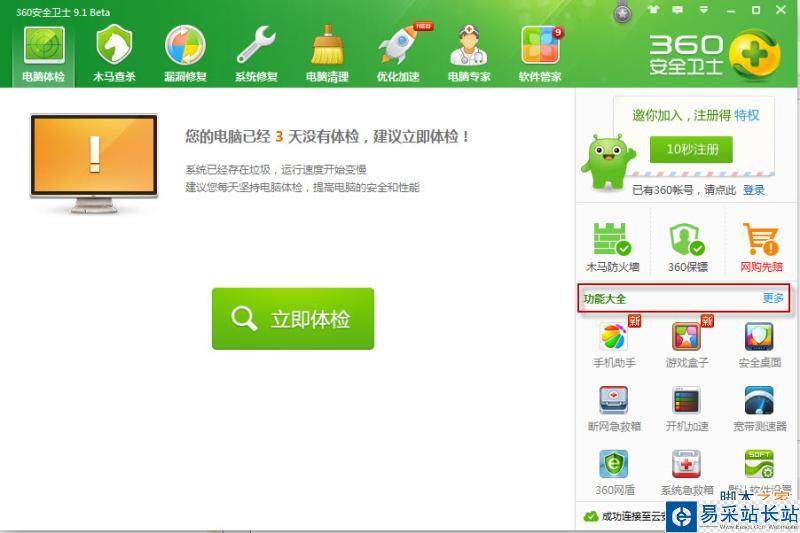 a.打開360安全衛(wèi)士,在右邊"功能大全"中點(diǎn)擊“更多”。