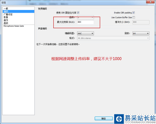 上傳碼率,根據個人網絡而定 建議 400-1000