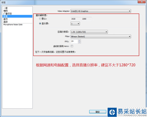 直播畫面分辨率: 設置-影響 顯示屏 幀數 FPS :24 (建議24,高了會占用大量資源)