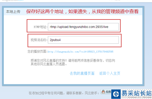 獲得直播平臺的RTMP地址 和視頻流名稱 風云直播