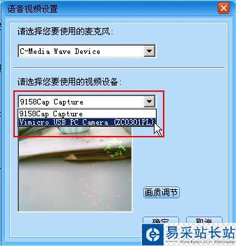 第三步:在語音視頻設置對話框里,選擇要使用的視頻設備,點擊確定后完成設置。