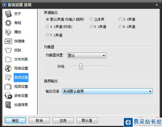 7、音頻設置:聲道輸出、均衡器、音頻輸出設備