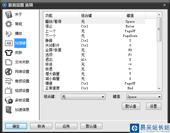 3、快捷鍵設置:上一個、下一個、靜音、全屏、播放/暫停等