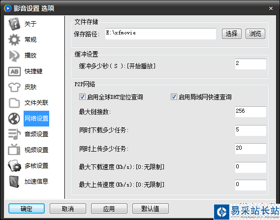 6、網絡設置:文件存儲位置、緩沖設置、P2P網絡