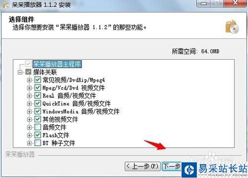 運行安裝文件進入安裝向?qū)В阆霝榇舸舨シ牌靼惭b哪些功能就是媒體關聯(lián)的文件類型看自己的需要去勾選。