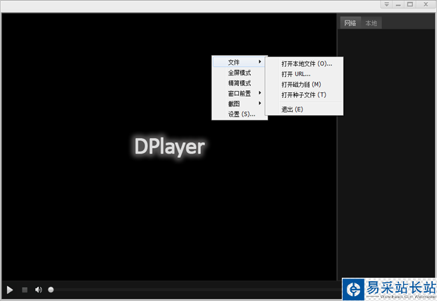 在播放器右邊,可以選擇"本地”和“網(wǎng)絡”,對播放列表進行操作,在播放列表上點擊右鍵,可以進行相關操作。