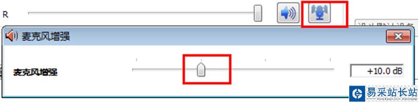 。檢查是否有“麥克風加強”,如果有,把加強的滑塊向左拉到1/3處。