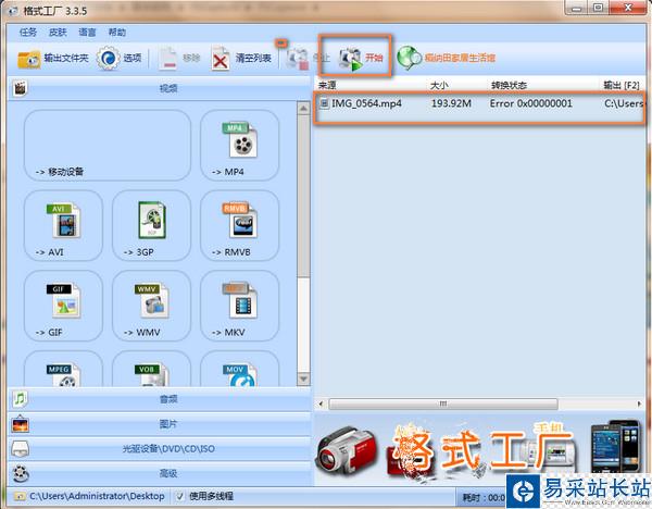 第七步:在主界面點擊“開始”,然后就是等待截取結束,可以在輸出文件夾看到剛才截取好的視頻