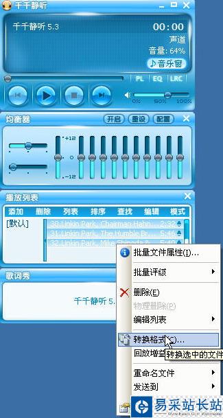 第二步:把文件就在千千靜聽里打開了,這里已經是單個歌曲文件了,選取所有要轉換出來的mp3文件(按住shift可以復選)
