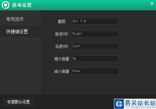 3、快捷鍵設置選項:
