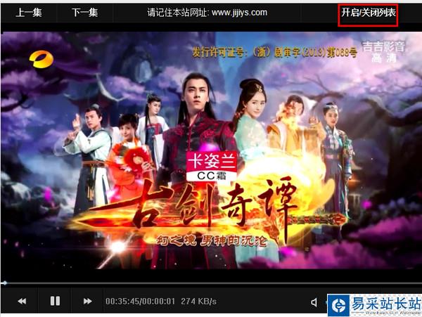 第四步:點擊“打開/關閉"列表(有的人進入不了下面的播放列表,提示說要你下載”吉吉影音“,你可以查看下你的瀏覽器的模式是不是兼容模式,我用360瀏覽器的極速模式的時候出現過這樣的情況)