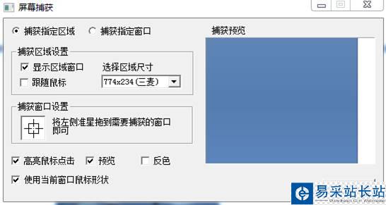 4) 如果選擇“捕獲指定區(qū)域”并去掉“跟隨鼠標(biāo)”前面的勾,則可以隨意拖動(dòng)和改變捕獲窗口的大小,根據(jù)自己的需要進(jìn)行捕獲和錄制。
