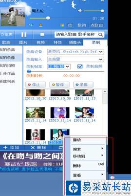 第四步:MTV正式錄制,在“錄制”功能模塊下,選中“我的錄像”,單擊按鈕,開始制作MTV,當錄制完成,可以單擊按鈕,完成MTV的制作。錄制的過程中,可以通過調整錄制幀率來調節照片切換速度,若想以幻燈片的形式展現,可以右擊要播放的照片,選中“播放方式>幻燈片”即可。如下圖: