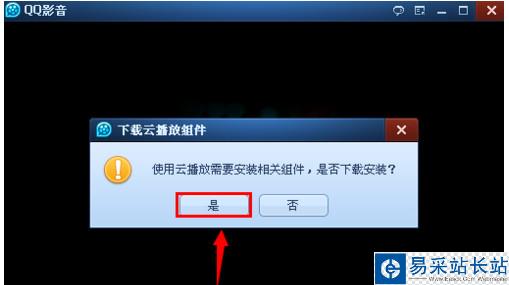第二步:我們在第一次使用QQ云播放,需要安裝下載QQ云播放組件。在下圖選擇“是”