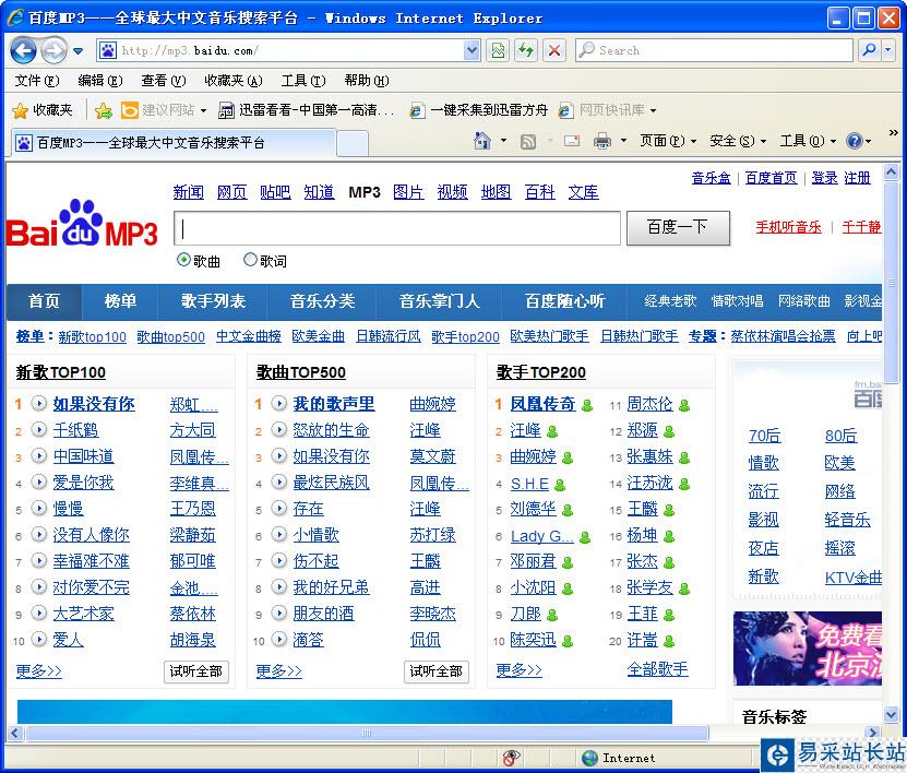 第二步:使用ie6、ie7、ie8、ie9瀏覽器,打開http://mp3.baidu.com/