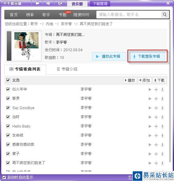 第二步:選擇一張專輯,比如:“李宇春 再不瘋狂我們就老了”,然后點擊下載整張專輯,也可以下載了哦。