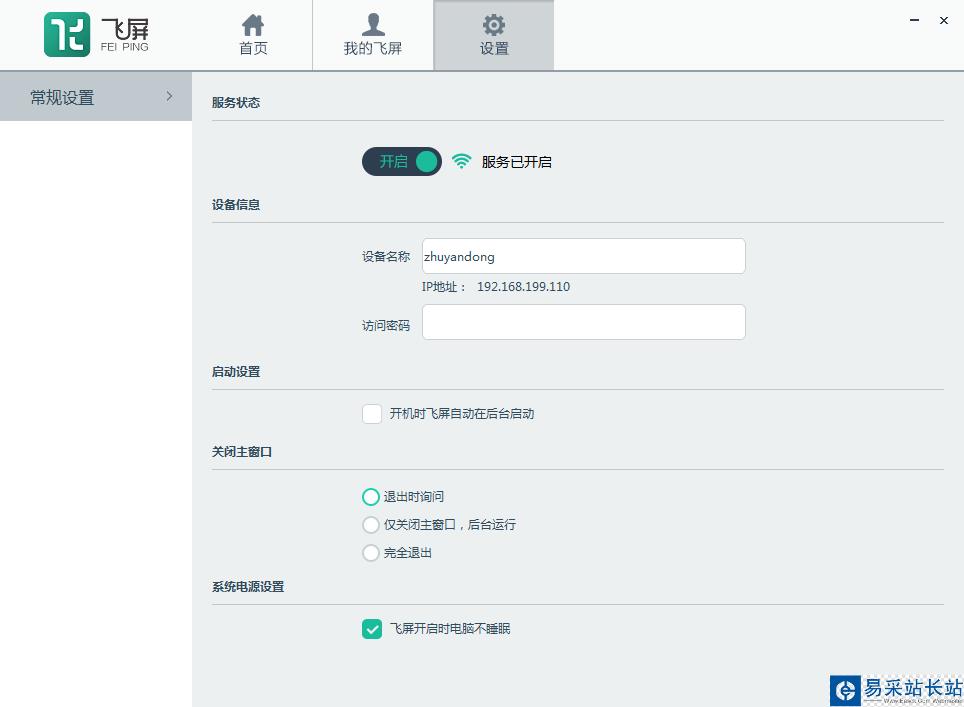 3、開(kāi)關(guān)開(kāi)啟后,其他裝有飛屏客戶端并且與電腦連接在同一網(wǎng)絡(luò)下的設(shè)備(暴風(fēng)魔鏡、智能電視)就可以發(fā)現(xiàn)您的電腦并連接。