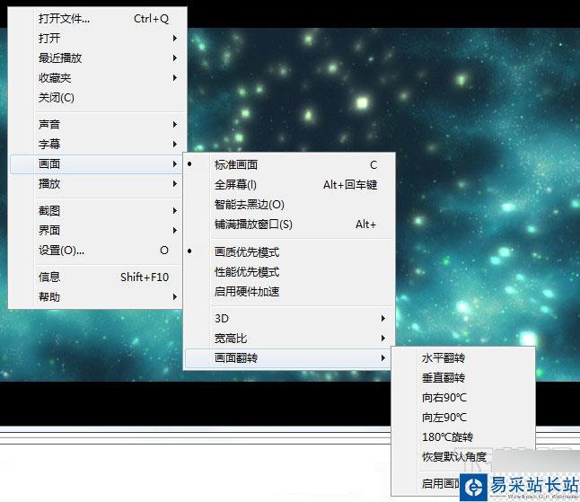 3、然后選擇“畫面翻轉”,再選擇一種翻轉方式,例如:向右90,那么畫面就顯示成了向右翻轉90了。