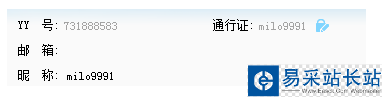 點擊圓頭像,會出現(xiàn)個人資料面板,在個人資料中,有“YY號”、“通行證”、“郵箱”、“昵稱”等信息: