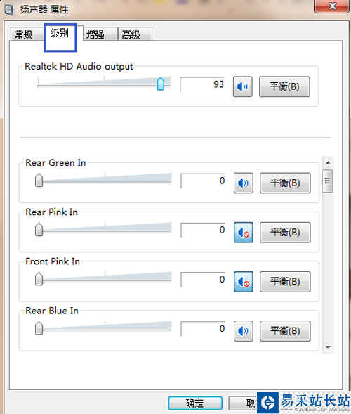 3、調(diào)節(jié)電腦的主音量中的平衡的聲道位置.雙擊電腦右下角的喇叭圖標(biāo),顯示主音量控制器,如下圖所示。