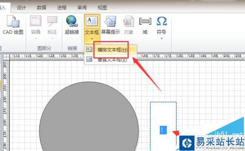 3、然后,選擇上方“插入”選項下“橫排文本框”工具,輸入一個“!”號,如圖所示。