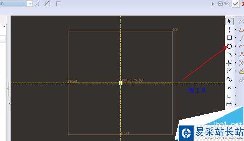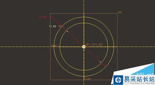 8、進(jìn)入草繪界面之后,通常是先繪制兩條中心線。中心線工具在工具欄選擇就可以了?,F(xiàn)在進(jìn)入了圓環(huán)過(guò)程,這里以繪制一個(gè)內(nèi)徑12MM,外徑15MM,高度18MM的圓環(huán)為例。選擇圓工具,繪制兩個(gè)同心圓,畫(huà)好之后標(biāo)注兩個(gè)圓的直徑。草繪好了之后勾選打勾符號(hào);