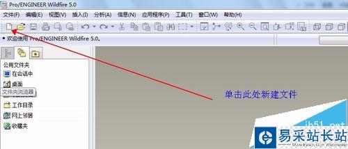 1、打開(kāi)PROE軟件,出現(xiàn)圖示工作界面: