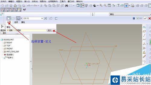 5、點(diǎn)擊確定之后進(jìn)入軟件工作界面,選擇拉伸命令,之后選擇放置-定義;