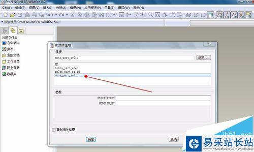 4、點(diǎn)擊確定之后,會(huì)彈出另外一個(gè)窗口,可以供我們選擇單位模板,通常我們都是選擇MMNS模板,即是以毫米為單位的模板(如圖);選擇好之后點(diǎn)擊確定;