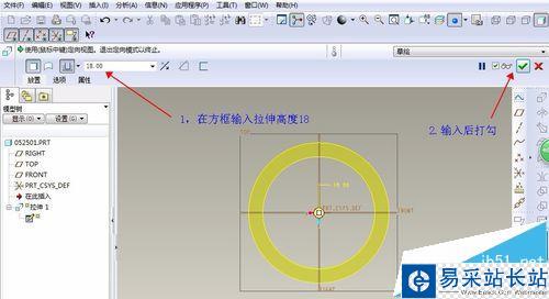9、之后退出草繪界面,設(shè)置好拉伸高度,就完成了拉伸實(shí)體的創(chuàng)建了。