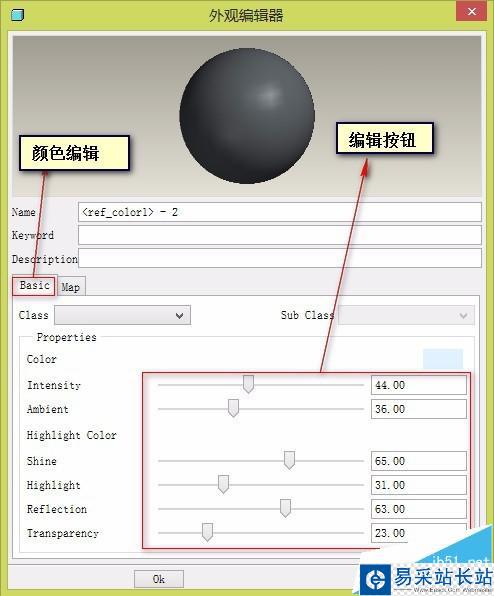 3、退出編輯界面,點擊顏色編輯按鈕,會彈出一個對話框,然后按住ctrt鍵選中零件所有畫面,單擊確定