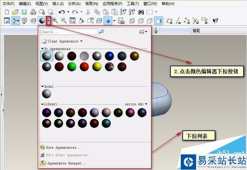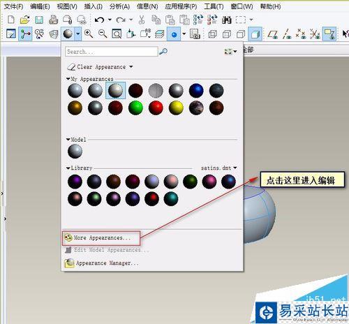 2、進入顏色編輯器,最下方有3個選擇按鈕(more appearance 更多的外觀;、model appearance 模型外觀編輯;appearance manager 外觀管理 ),我們一般選用第一個進行編輯