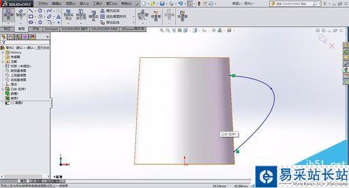 5、繪制草圖,以前視基準面為草圖平面,利用樣條曲線繪制線條,如下圖所示,繪制的時候,可以拖動樣條曲線的點來改變曲線的外形大小方向,完成后就可以退出草圖。