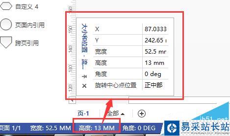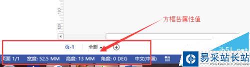 4、在軟件左下方出現方框的長度、高寬、角度等屬性值。
