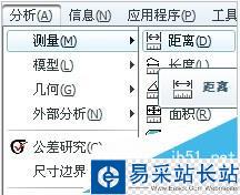 3、點選Pro/ENGINEER“分析”菜單->選擇“測量”->選擇“距離”,如圖