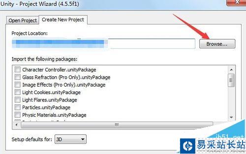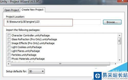 2、單擊新建游戲工程選項卡,單擊browse按鈕。彈出選擇文件夾對話框,這里需要我們新建一個空文件夾,且文件夾名及路徑名不能有中文(unity3d對中文支持不好)。這里我們就創建一個名為123的空文件夾。
