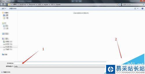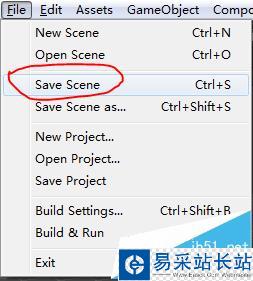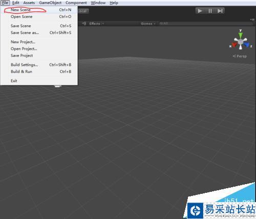 6、下面順便介紹一下如何在工程中創建場景吧。單擊菜單欄中的file,彈出窗口選擇new scene就行了。當然現在也是在一個場景中,只是沒有名字,可以通過單擊save scene就可以保存當前場景,名為1吧。