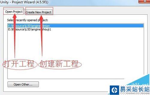 1、首次打開unity軟件。會彈出對話框。這里就可以創建游戲工程。