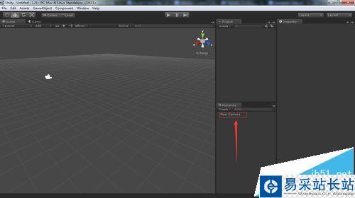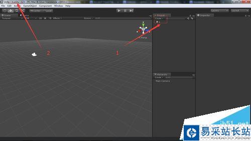 7、此時注意到右邊的工程項目窗口有一個場景文件創立了,它的名字是1.并且,頂部的也變了不在是untitled而是1了。