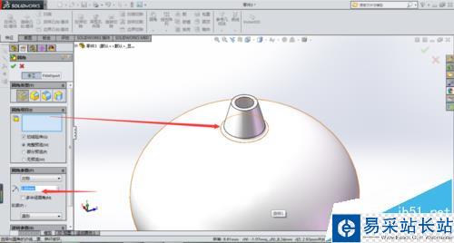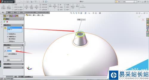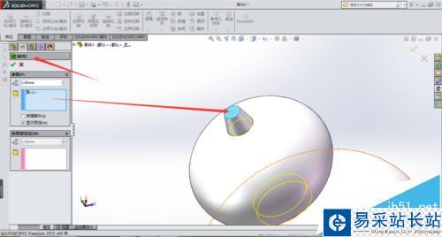 3、重新生成實體后,選擇抽殼命令,選取葫蘆頂平面為抽取面,留取壁厚1毫米。完成后可選擇截面視圖查看。