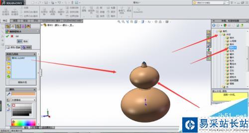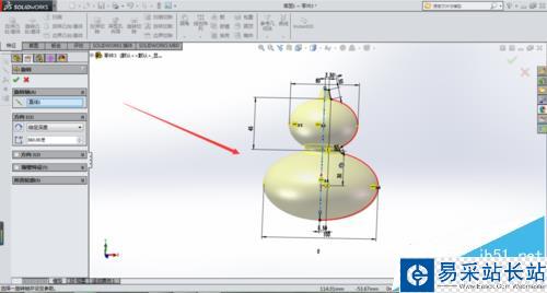 2、使用旋轉(zhuǎn)凸臺生成葫蘆實體,如果形狀不夠美觀,可以返回草圖修改尺寸,如圖