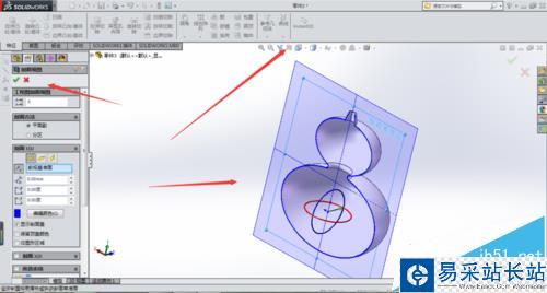在solidworks中通過橢圓連接修剪繪制葫蘆的草圖輪廓,再通過旋轉(zhuǎn)、倒圓角、抽殼等功能生成葫蘆模型的一個過程。