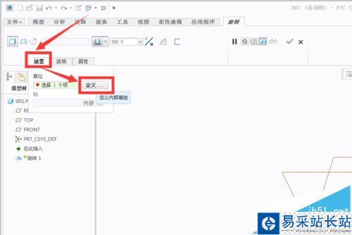 4、點擊“放置”——“定義”,進行草繪平面的設置