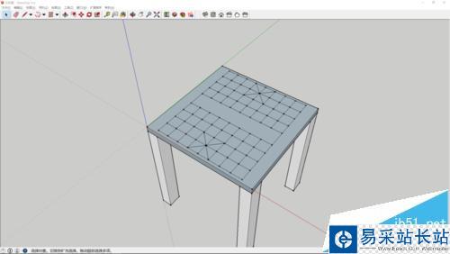 6、然后使用矩形工具和推拉工具繪制出桌腿,沒有細節,不要在意。然后放置到下方,完成。